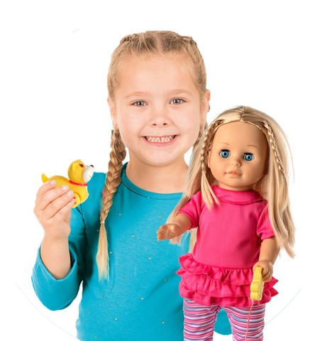 Po stisknutí tlačítka na bříšku začne panenka povídat: "Ahoj, já jsem Sofinka a mám ráda svého pejska. Pomůžeš mi vymyslet jeho jméno? Budeme si spolu hrát? Dej mi vodítko do ruky a půjdeme se projít. Mám tě ráda...." a když jí dáte vodítko do ruky, začne chodit.