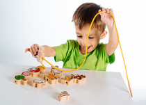 - Dřevěná hračka pro nejmenší pomáhá rozvíjet zábavnou formou jemnou motoriku, napomáhá soustředění, procvičuje zručnost a učí děti trpělivosti.